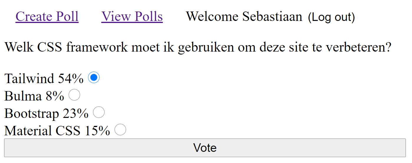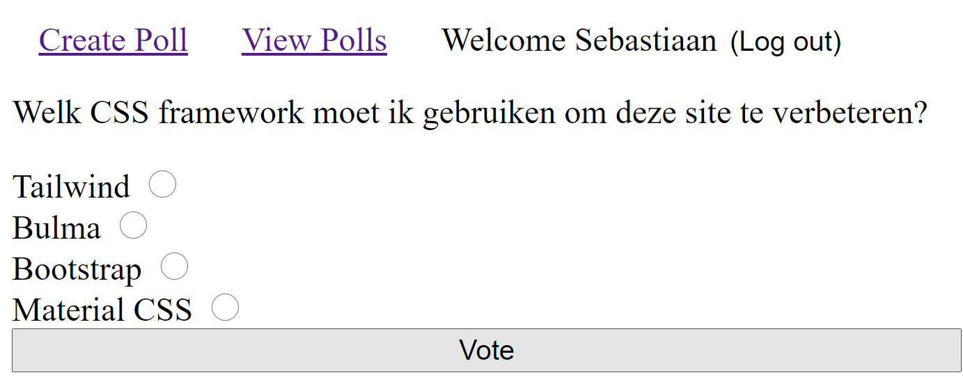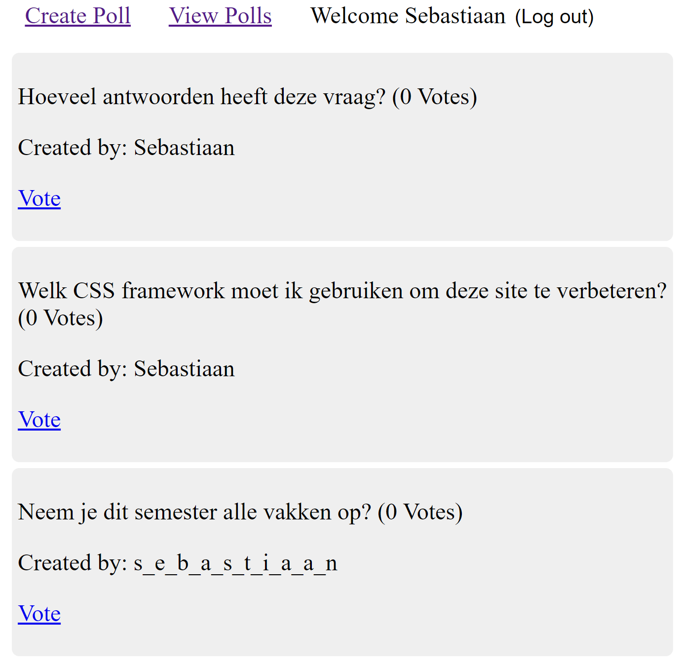 Het examen bestaat uit het opbouwen van een site waarmee gebruikers polls kunnen aanmaken en op polls kunnen stemmen.