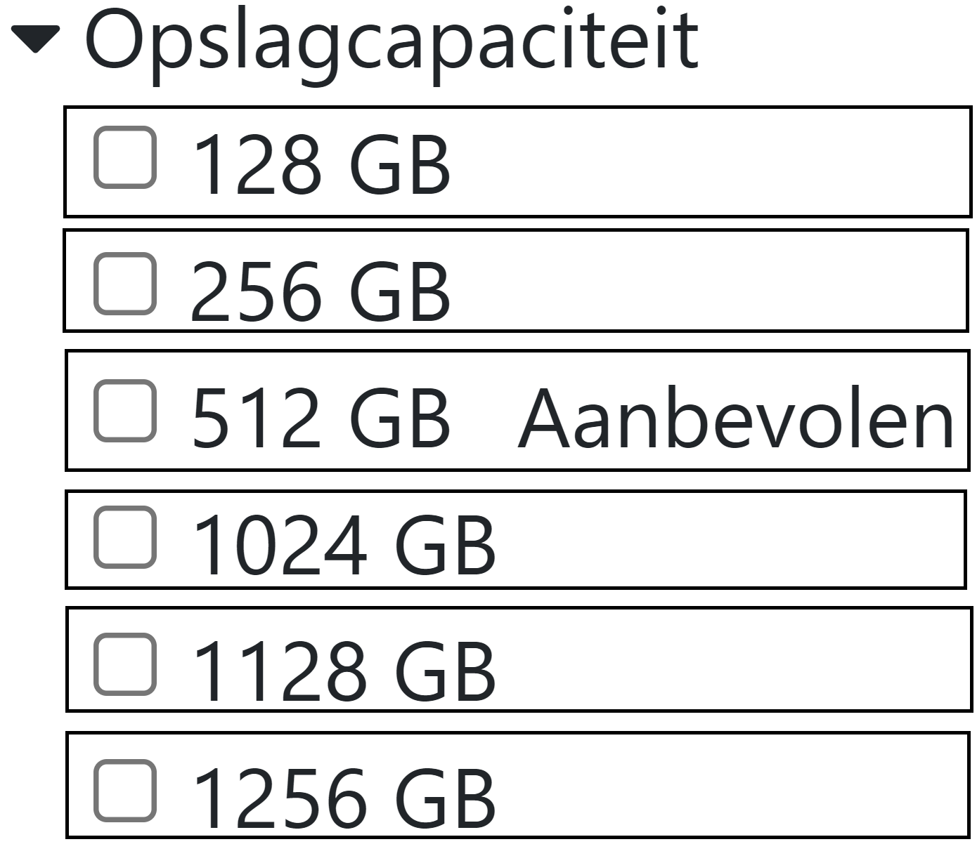 Naast het weergeven van de opties moet de component opengeklapt kunnen worden (standaard open). Hiervoor gebruik je de state van de component Filter. Het pijltje naar beneden wordt door Font Awesome gedefinieerd in het object faCaretDown. Een dichtgeklapte filter gebruikt het faCaretUp icoon en ziet er als volgt uit.