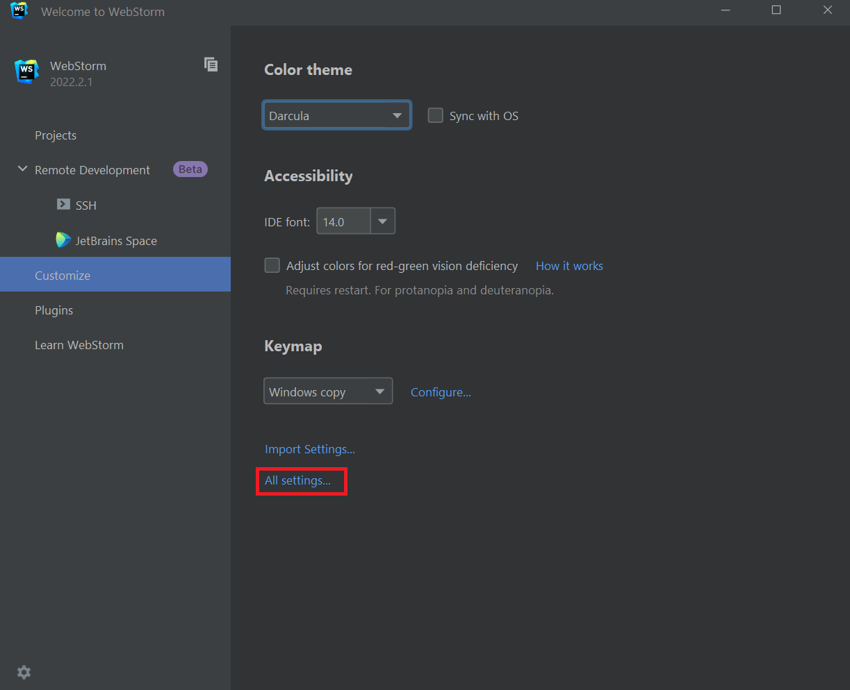 Ga naar de JetBrains Education paginaopen in new window en vraag een gratis licentie aan via je Thomas More email. Om WebStorm te installeren heb je twee opties, de eerste is om de JetBrains Toolboxopen in new window te gebruiken. Dit is een applicatie waarmee alle JetBrains producten geïnstalleerd kunnen worden, verder geeft deze app je ook toegang tot beta-build van nieuwe versies en worden de geïnstalleerde tools automatisch geüpdatet. De andere optie is om WebStormopen in new window als stand-alone te installeren.