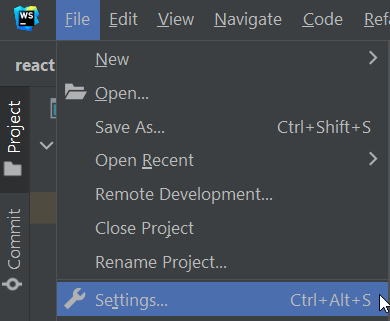 Standaard bevat WebStorm in het "New File" menu geen optie om een JSX file aan te maken (het type dat wij gebruiken). Het is echter heel eenvoudig om dit te configureren. Ofwel vertrek je van het startscherm, ofwel vanuit een geopend project.